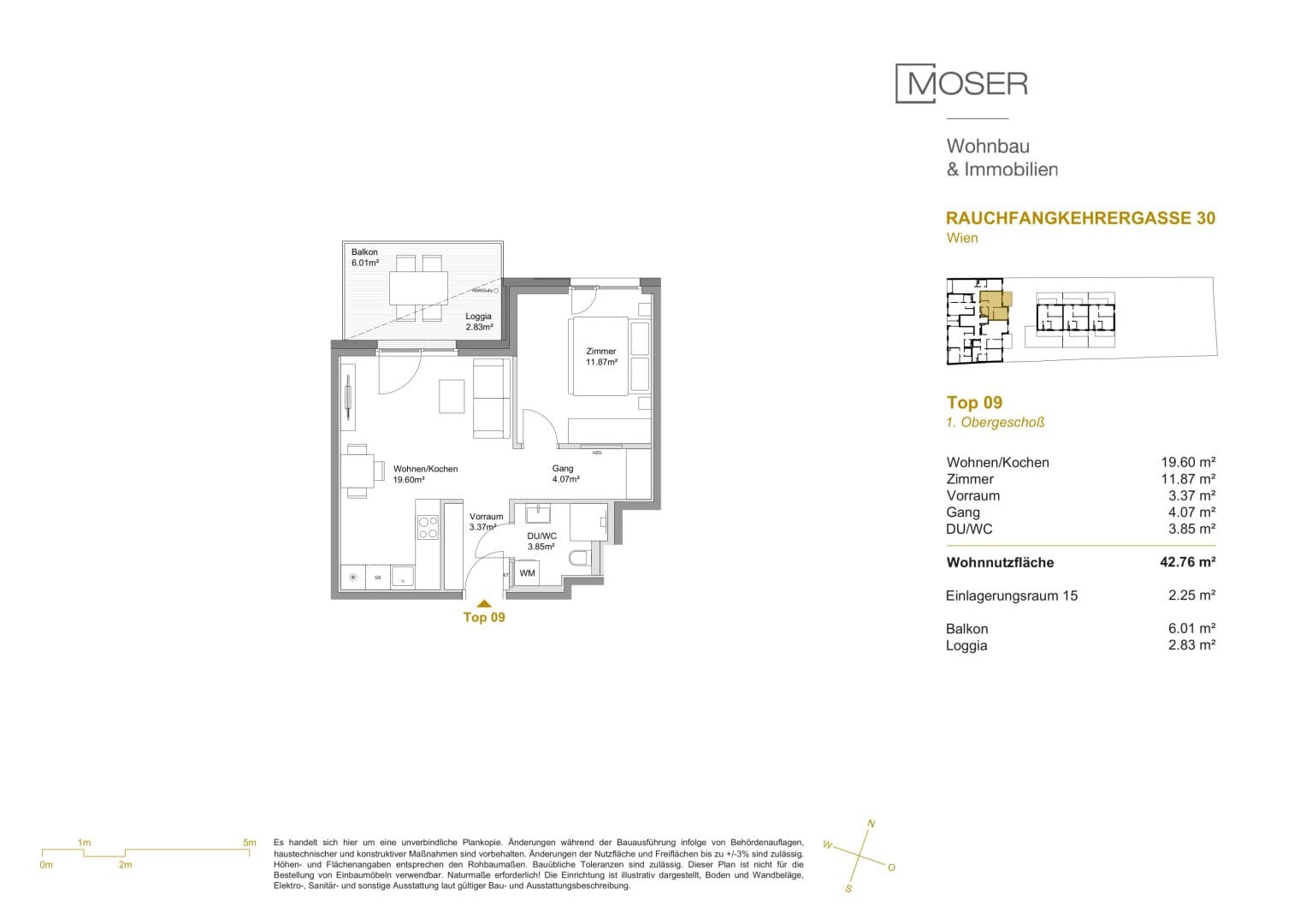42.76 m² 2 Rooms1. Etage