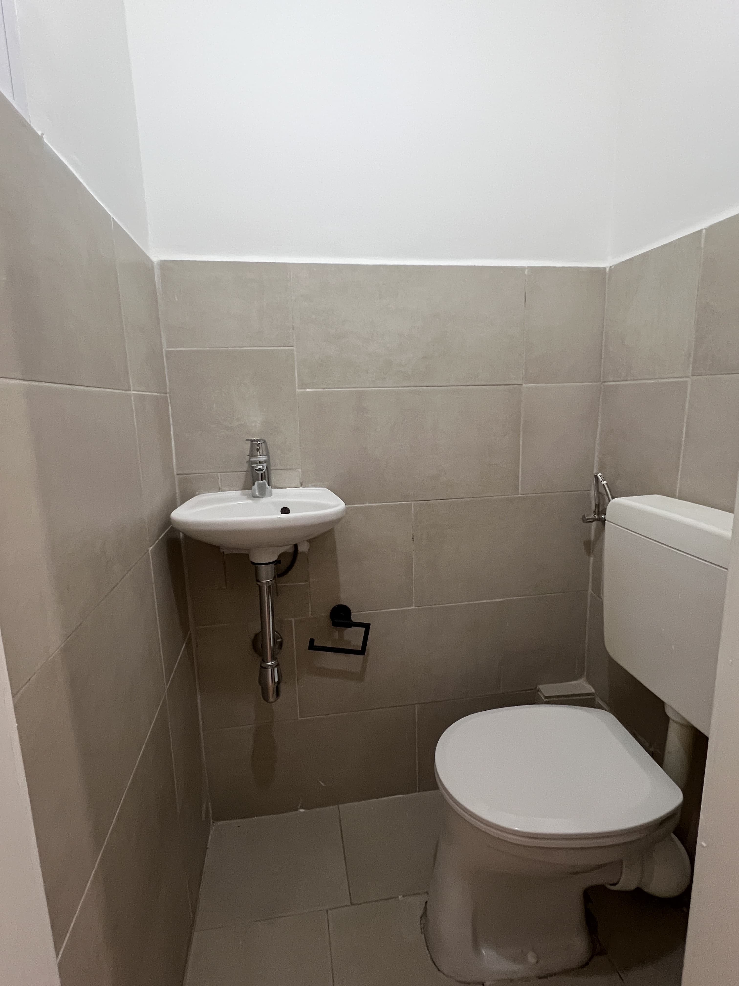 Room layout // Entrance hall // Kitchen - no kitchen installed - kitchen connections are prepared - for stove and sink, €400 can be withheld from the first rent. // Living room // Bathroom with shower // Bedroom // Separate toilet