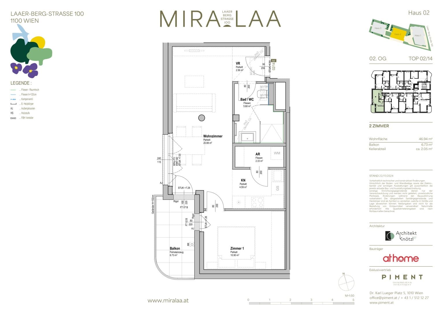 Das Park-Ensemble am Laaer Berg "MIRA LAA" mit seinen 54 Eigentumswohnungen entfaltet sich mitten im neuen Stadtviertel Viola Park als ein gehobenes Refugium der Vielfalt: Für alle Stadtliebhaber, die auch gerne schnell zu Fuß in der Natur sein wollen und Aussicht lieben.