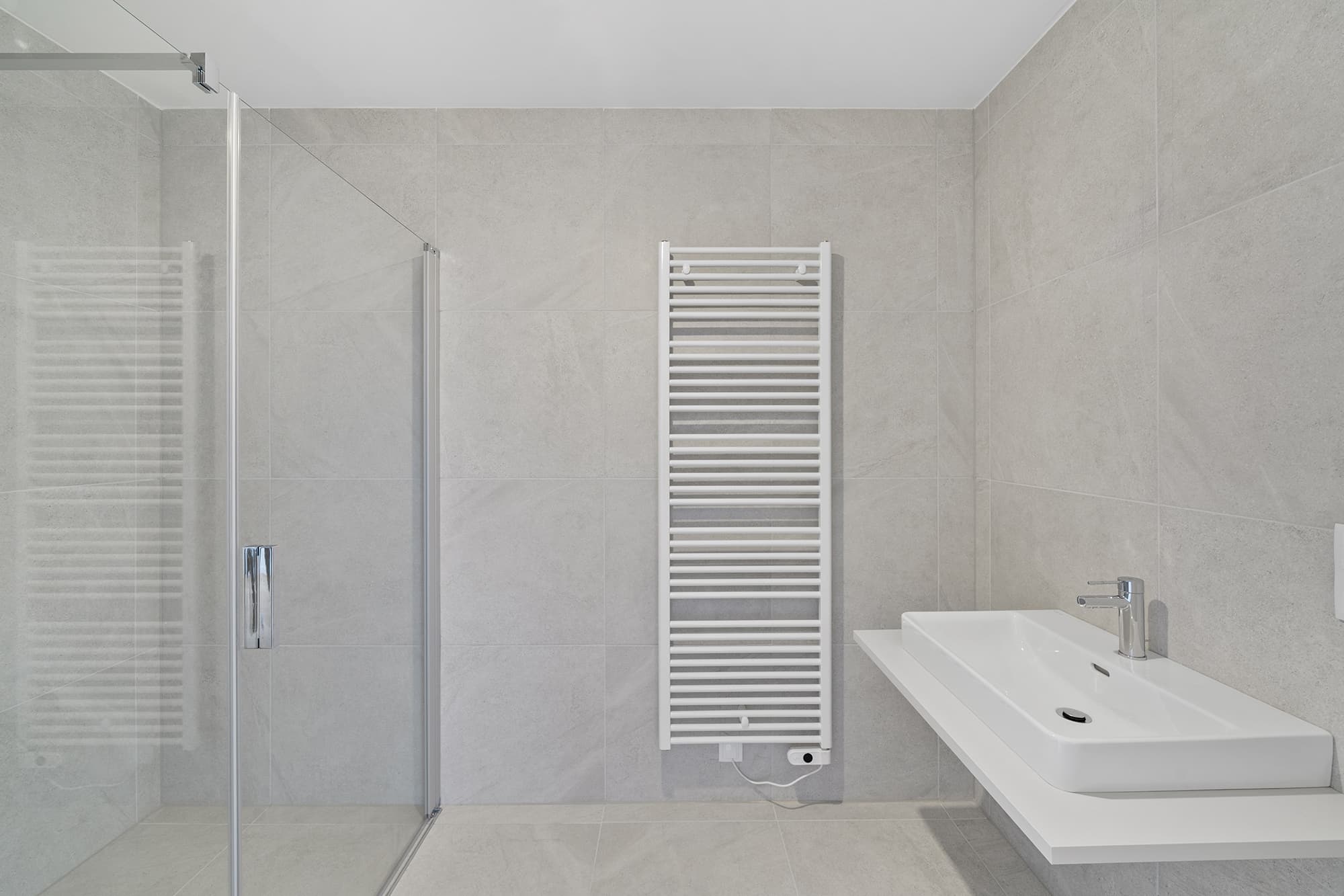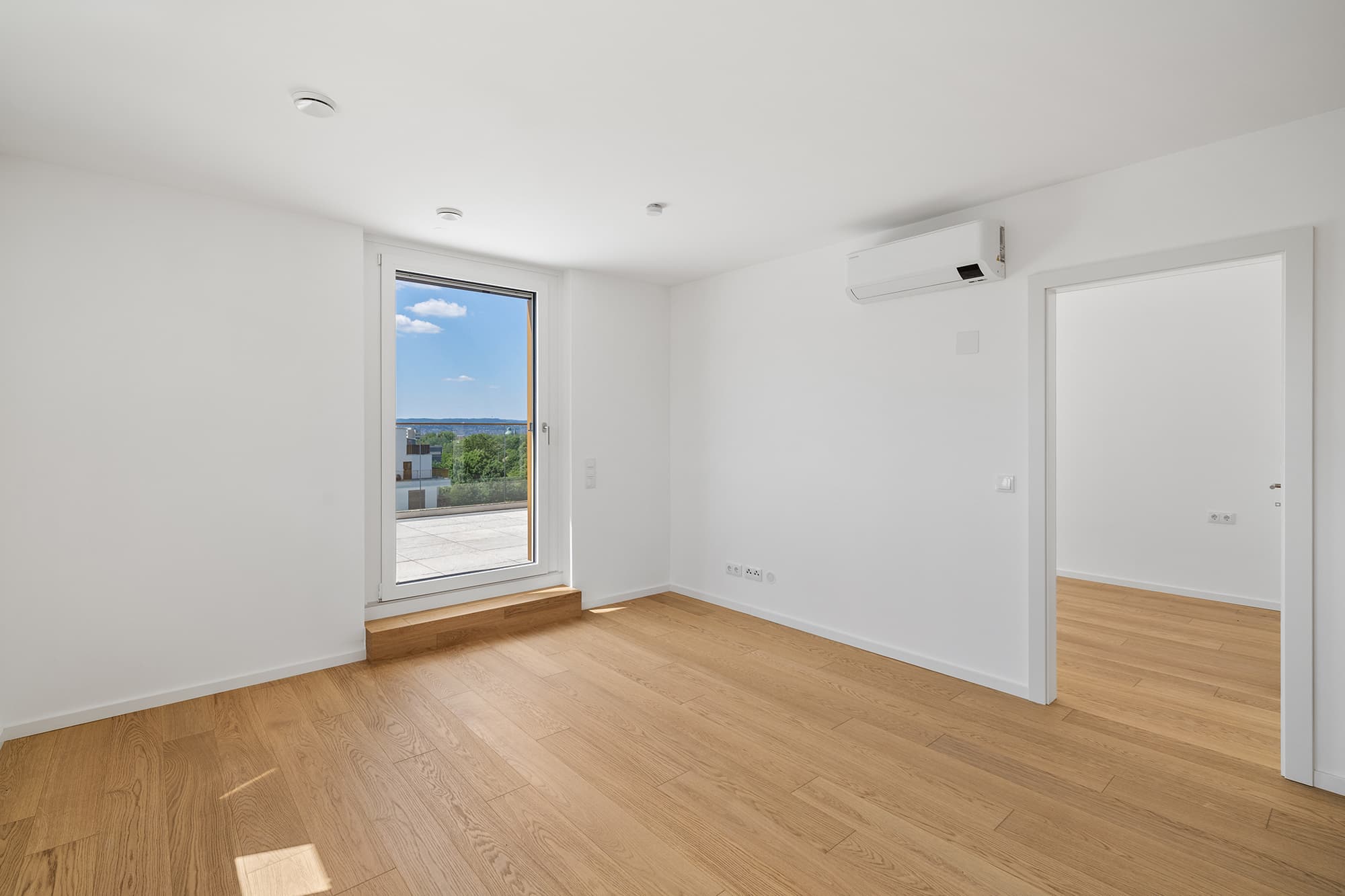 Ausstattung: // Sole/Wasser-Wärmepumpe mit Tiefenbohrungen // Heizen und (Teil-)Kühlen über oberflächennahe Bauteilaktivierung in der Decke // Kontrollierte Wohnraumlüftung mit Wärmerückgewinnung // Split-Klimaanlagen in den Dachgeschoss-Wohnungen // Bodenebene Walk-In Duschen mit Verglasung // Hochwertige Sanitärkeramik und Armaturen // geschmackvolle Verfliesung in den Sanitärbereichen // Langriemen-Eichen-Parkett // Raffstores (elektrisch bedienbar) // Einbruchhemmende Wohnungseingangstüren