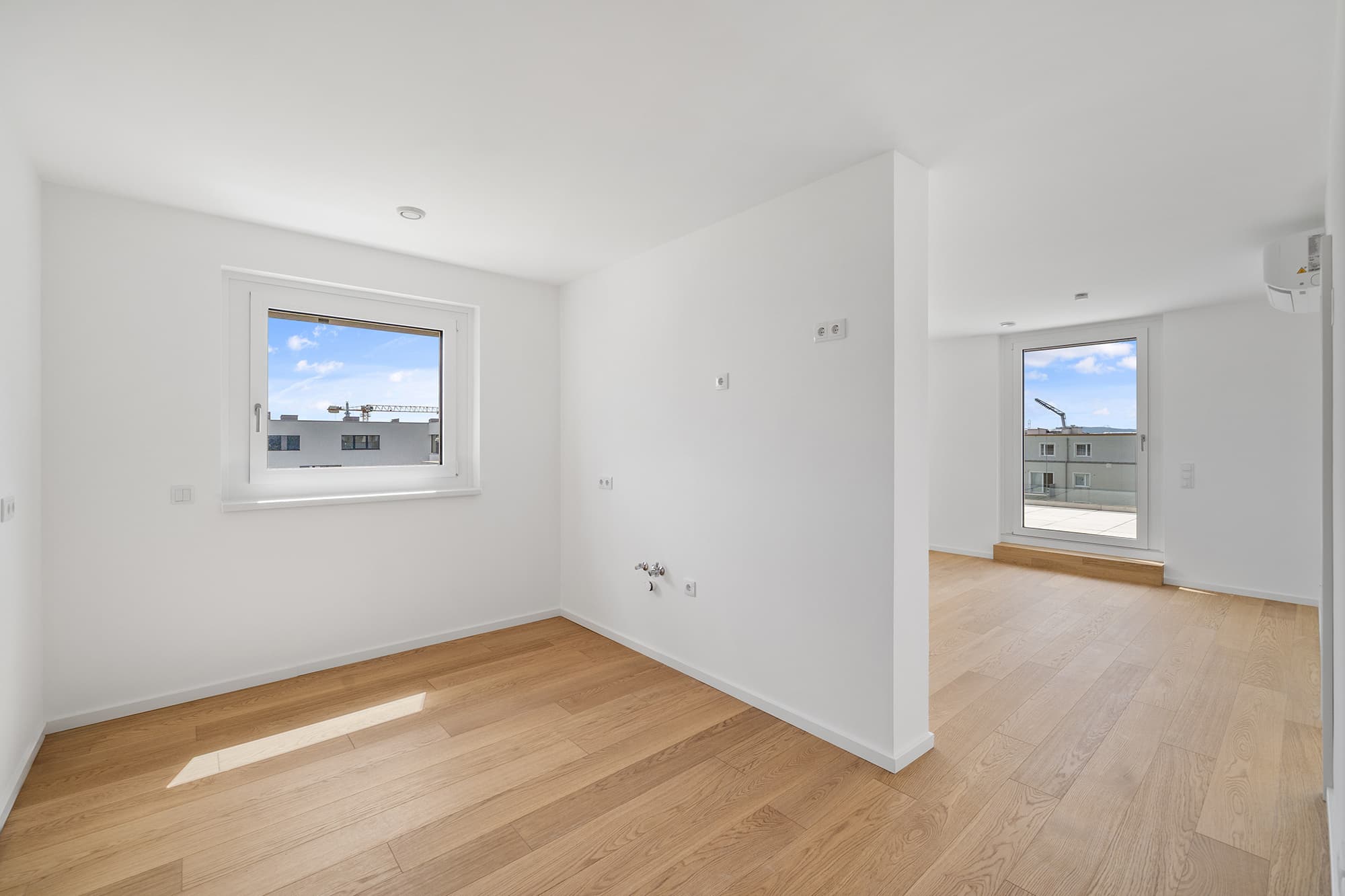 Das Park-Ensemble am Laaer Berg "MIRA LAA" mit seinen 54 Eigentumswohnungen entfaltet sich mitten im neuen Stadtviertel Viola Park als ein gehobenes Refugium der Vielfalt: Für alle Stadtliebhaber, die auch gerne schnell zu Fuß in der Natur sein wollen und Aussicht lieben.