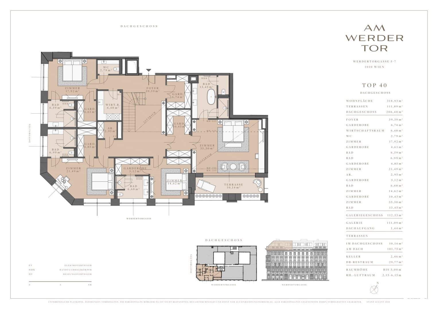 Raumaufteilung Top 40: // Foyer // Garderoben // Master-Bedroom mit großzügiger Garderobe, eigenem Badezimmer und Ausgang auf die Terrasse // 3 Schlafzimmer jeweils mit Bad en suite // Gäste-WC // Wirtschaftsraum // großzügiger Wohnsalon & Küchenbereich im Galeriegeschoss mit Aufgang zur Dachterrasse
