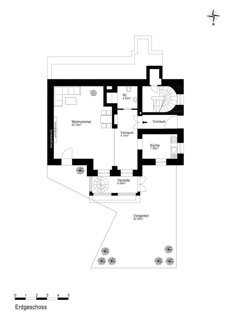 Vermietet wird die Wohnung Top 1, die sich auf insgesamt ca. 168 m2 Wohnfläche über zwei Etagen erstreckt (Erdgeschoss & erstes Obergeschoss) und sich wie folgt aufteilt: