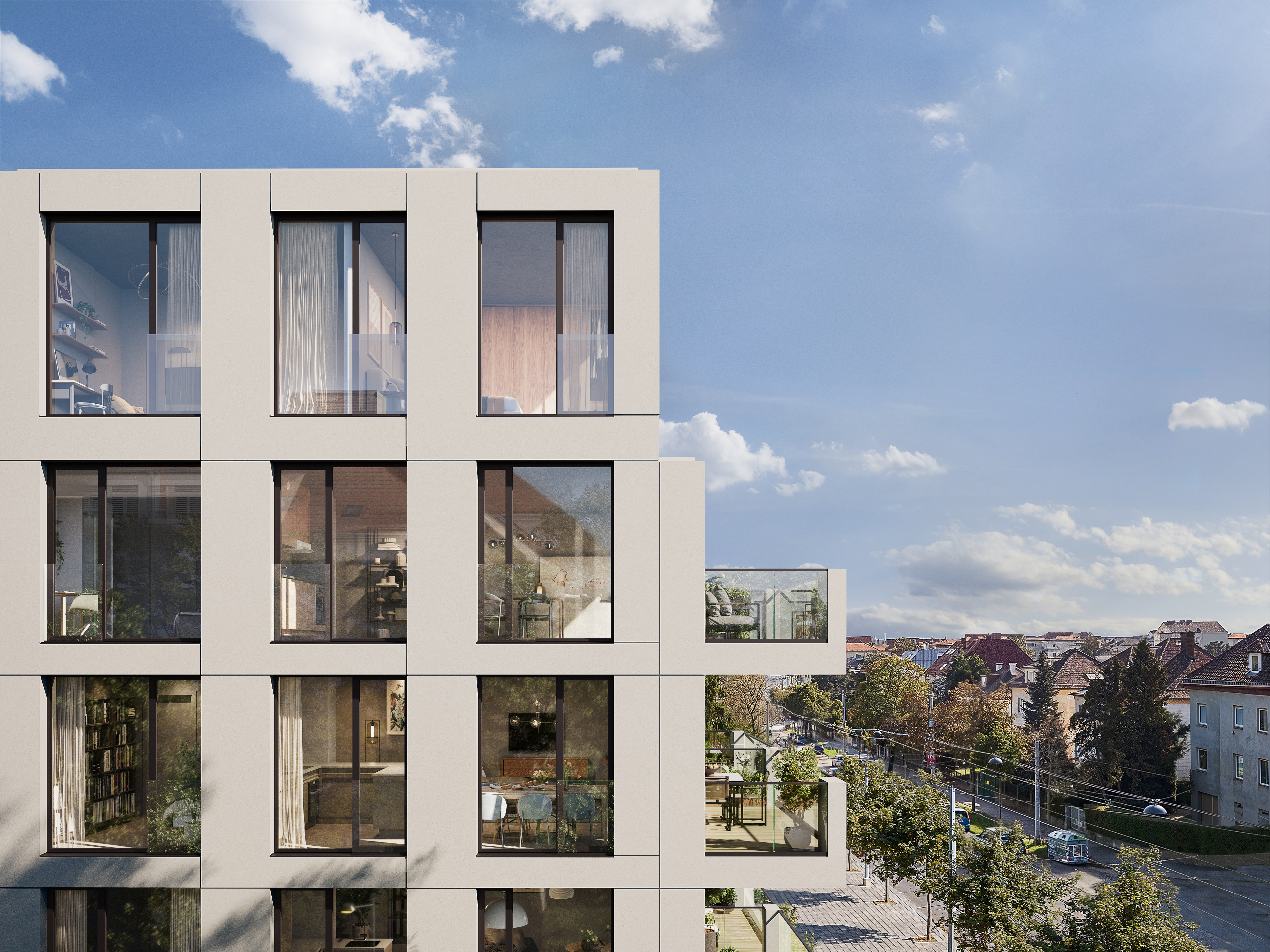In der Alsgasse 2 entsteht ein Ensemble aus 25 Wohnungen, das naturnahe Erholung mit urbaner Ästhetik vereint.  Ein Ort, der Raum gibt – für Gelassenheit, Gedanken und neue Perspektiven.