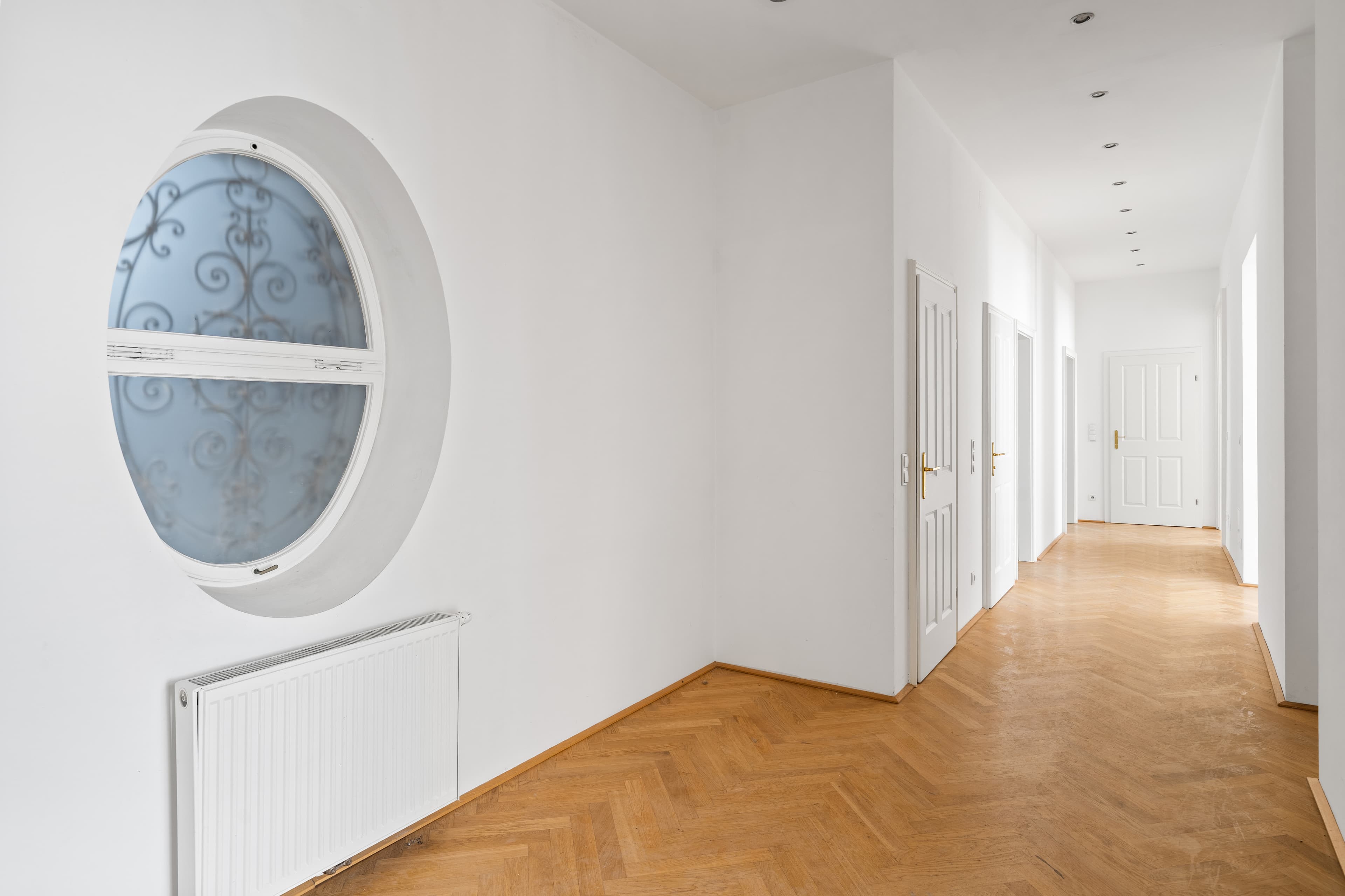 Die Wohnung liegt im 1. Obergeschoss eines gepflegten Altbaus mit eleganter Fassade und stilvollem Stiegenhaus. Auf ca. 143 m² Wohnfläche erwartet Sie ein großzügiges Raumkonzept in sehr gutem Zustand.