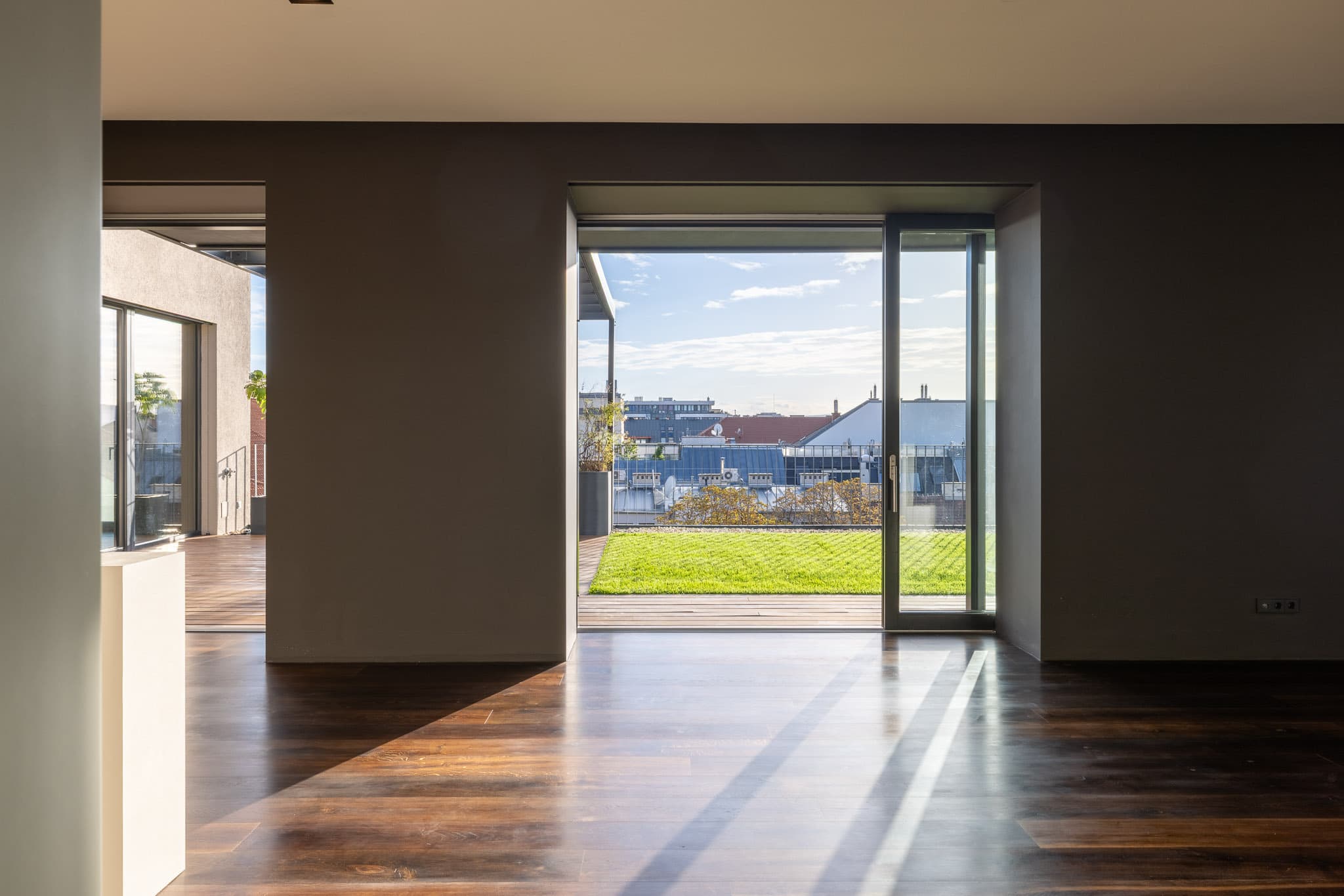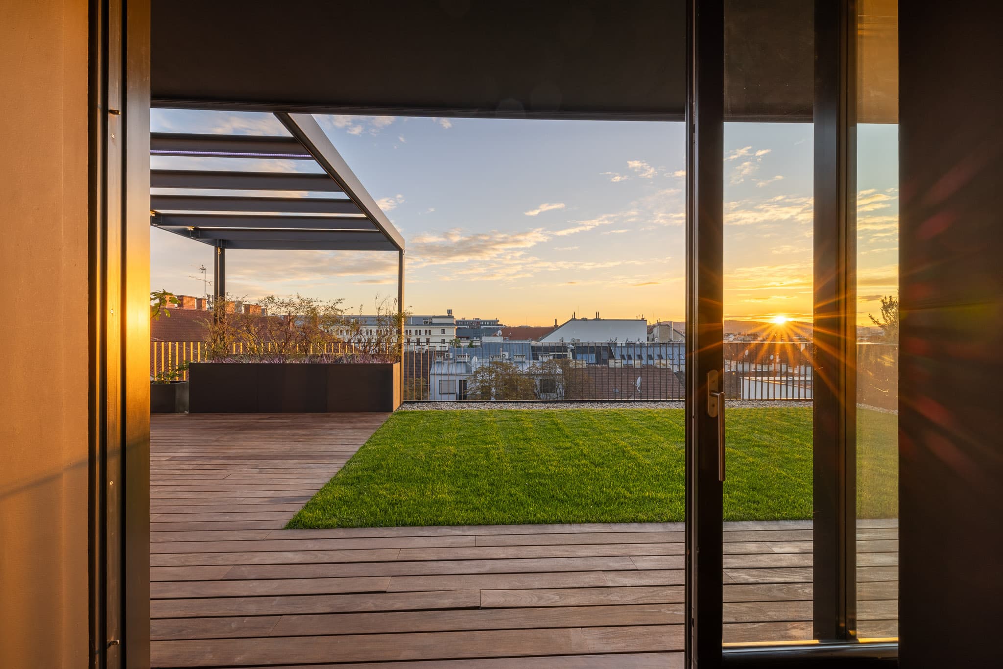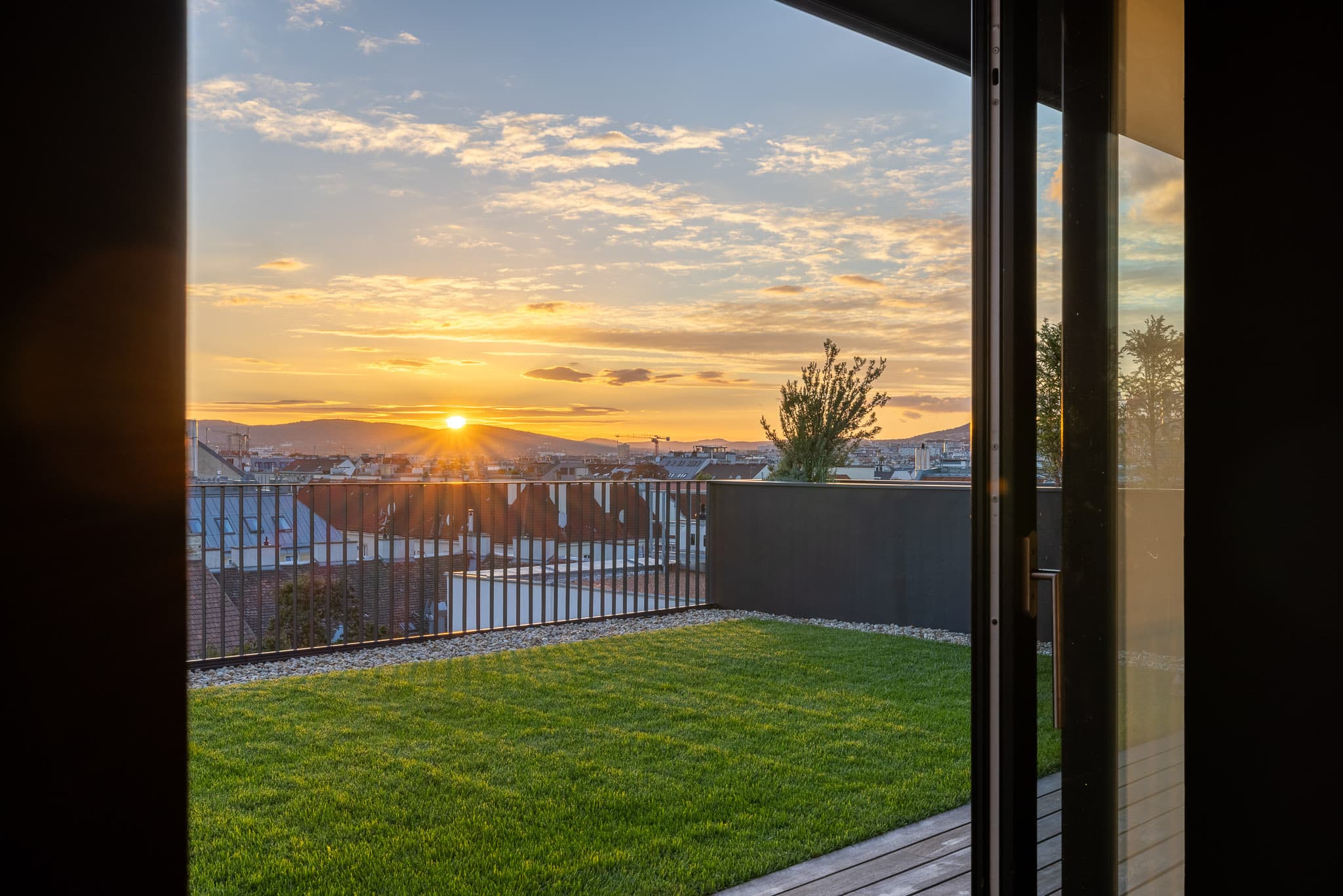 Dieses außergewöhnliche Architekten-Penthouse vereint modernes Design, höchste Handwerkskunst und urbanen Wohnkultur auf eindrucksvolle Weise. Es präsentiert sich hier ein Wohnkonzept, das durch seine Einzigartigkeit der Planung, Großzügigkeit & Weitblick, sowie Detailverliebtheit neue Maßstäbe setzt. Auf einer großzügigen Ebene präsentiert sich das Penthouse als eine Statement zeitgenössischer Architektur – besondere Raumhöhen, klare Linien, raumhohe Glasflächen und ein perfekt durchdachter Grundriss schaffen ein lichtdurchflutetes Wohnambiente mit unvergleichlicher Weite und Ausblick. Im Inneren überzeugen maßgefertigte Design-Einbaumöbel, edle Materialien und hochwertige Oberflächen, die Funktionalität und Ästhetik perfekt miteinander verbinden. Offen gestaltete Wohn- und Lebensbereiche, ein repräsentativer Wohnsalon mit welche sich eben auf Terrasse und Garten öffnet, bildet das Herzstück dieser außergewöhnlichen Immobilie. Das Highlight der großzügige Terrasse auf Wohnebene, welche weitläufig in einen Garten übergeht, eine grüne Oase der Ruhe, bietet atemberaubende Fernblicke über die Dächer Wiens bis zu den Ausläufern des Wienerwalds. Hier verschmelzen Innen- und Außenraum zu einem exklusiven Lebensraum im Freien – ideal für stilvolle Dinnerparties, entspannte Sonnenuntergänge oder private Rückzugsmomente. Von hier können alle Tages- und Jahreszeiten stimmungsvoll wahrgenommen werden.Das Zusammenspiel aus architektonischer Raffinesse, exklusivem Interieur und spektakulärer Aussicht macht dieses Penthouse zu einer einmaligen Gelegenheit für anspruchsvolle Individualisten, die das Außergewöhnliche suchen.