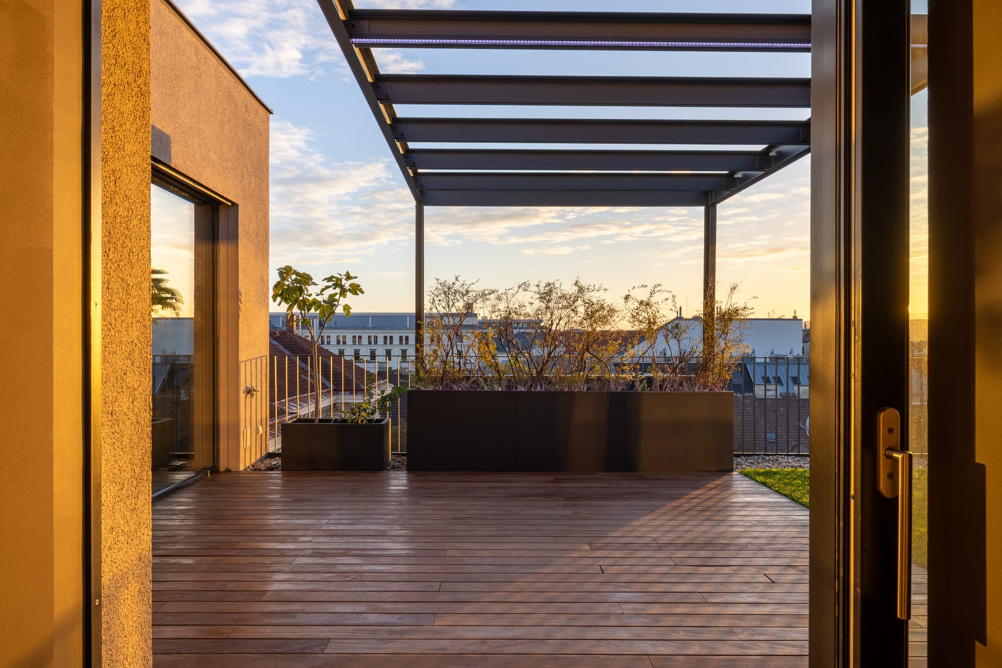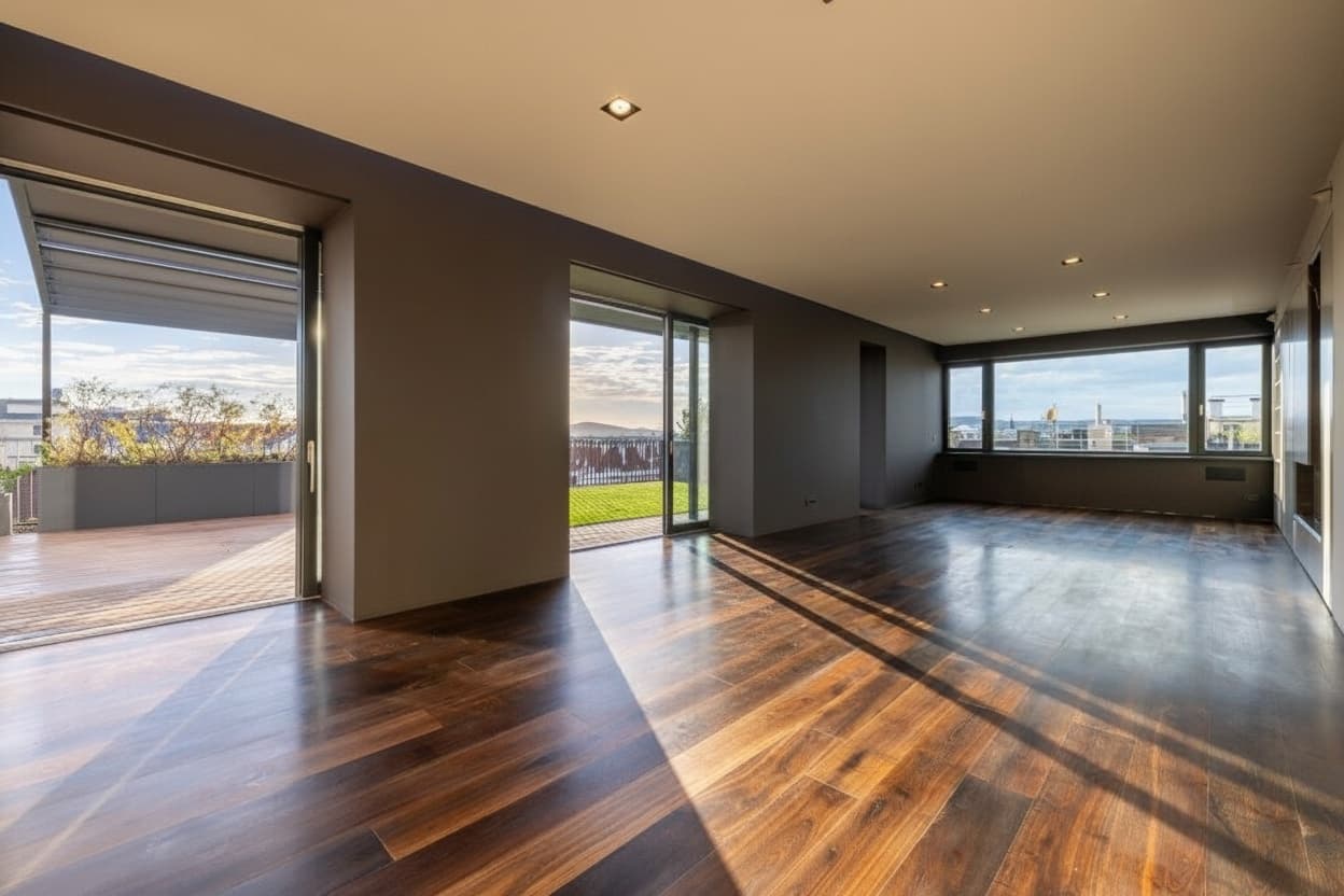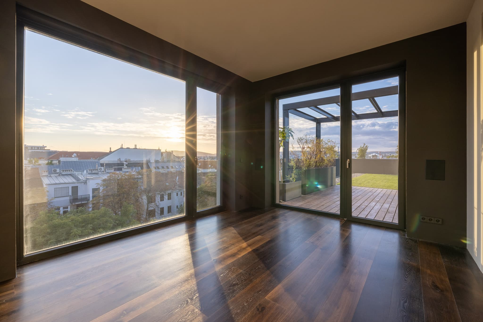 Dieses außergewöhnliche Architekten-Penthouse vereint modernes Design, höchste Handwerkskunst und urbanen Wohnkultur auf eindrucksvolle Weise. Es präsentiert sich hier ein Wohnkonzept, das durch seine Einzigartigkeit der Planung, Großzügigkeit & Weitblick, sowie Detailverliebtheit neue Maßstäbe setzt. Auf einer großzügigen Ebene präsentiert sich das Penthouse als eine Statement zeitgenössischer Architektur – besondere Raumhöhen, klare Linien, raumhohe Glasflächen und ein perfekt durchdachter Grundriss schaffen ein lichtdurchflutetes Wohnambiente mit unvergleichlicher Weite und Ausblick. Im Inneren überzeugen maßgefertigte Design-Einbaumöbel, edle Materialien und hochwertige Oberflächen, die Funktionalität und Ästhetik perfekt miteinander verbinden. Offen gestaltete Wohn- und Lebensbereiche, ein repräsentativer Wohnsalon mit welche sich eben auf Terrasse und Garten öffnet, bildet das Herzstück dieser außergewöhnlichen Immobilie. Das Highlight der großzügige Terrasse auf Wohnebene, welche weitläufig in einen Garten übergeht, eine grüne Oase der Ruhe, bietet atemberaubende Fernblicke über die Dächer Wiens bis zu den Ausläufern des Wienerwalds. Hier verschmelzen Innen- und Außenraum zu einem exklusiven Lebensraum im Freien – ideal für stilvolle Dinnerparties, entspannte Sonnenuntergänge oder private Rückzugsmomente. Von hier können alle Tages- und Jahreszeiten stimmungsvoll wahrgenommen werden.Das Zusammenspiel aus architektonischer Raffinesse, exklusivem Interieur und spektakulärer Aussicht macht dieses Penthouse zu einer einmaligen Gelegenheit für anspruchsvolle Individualisten, die das Außergewöhnliche suchen.