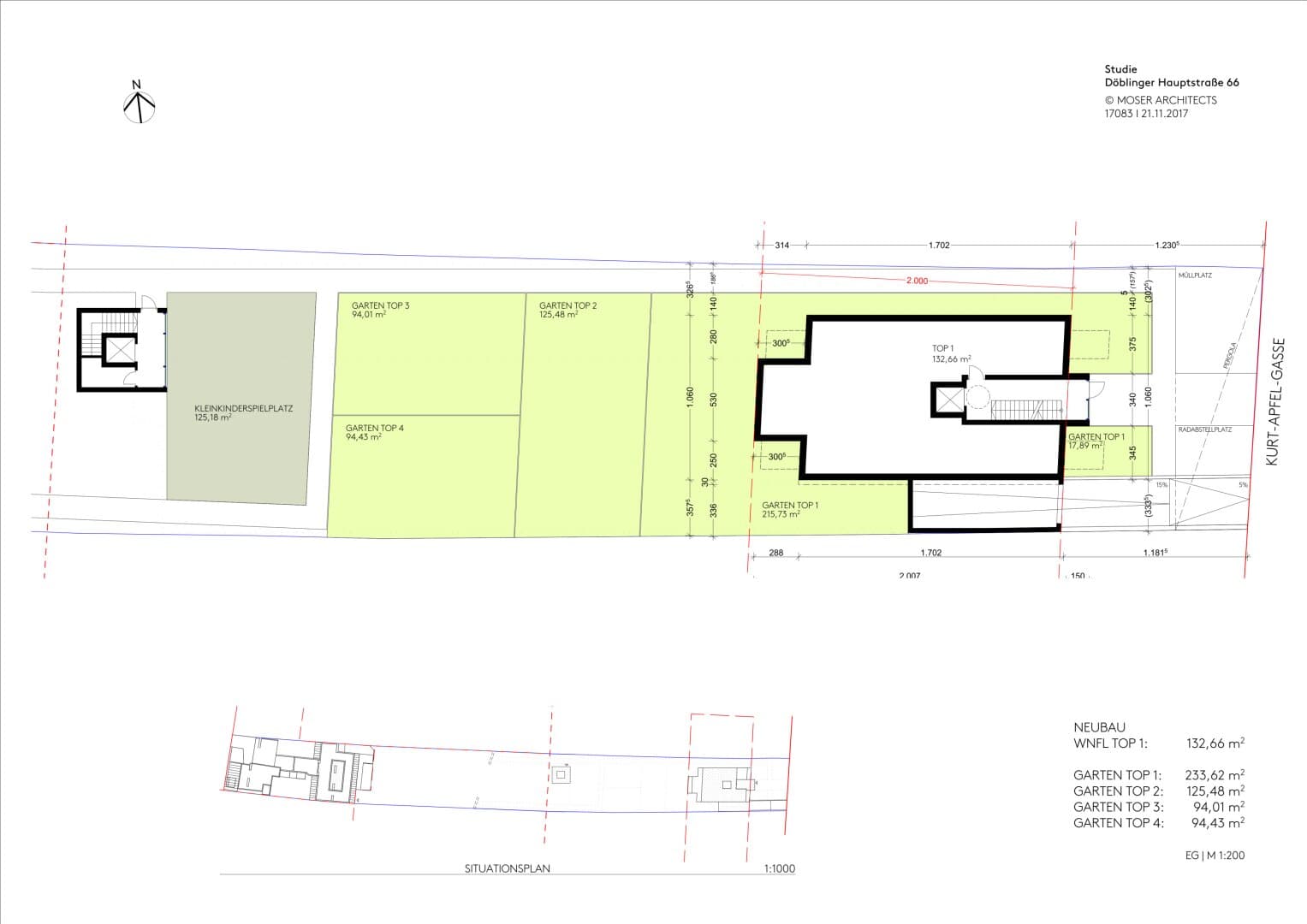 Potenzial Erzielbare Nutzfläche: ca. 484 m2 Balkone: ca. 49 m2 Terrassen: ca. 52 m2 Privatgärten: ca. 548 m2 Geschoße: KG, EG, 1. OG, DG