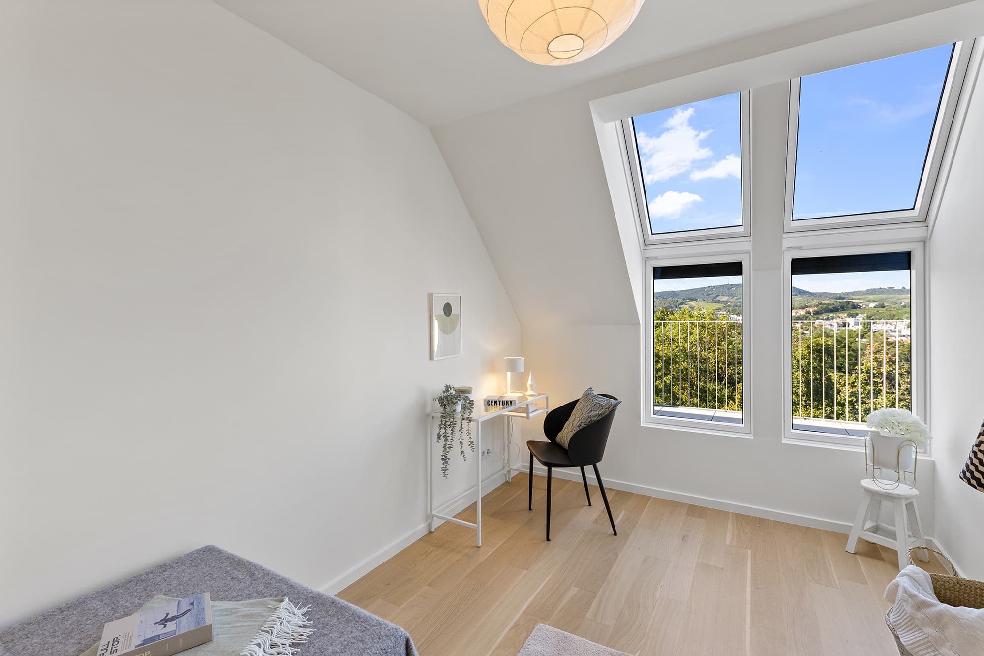 Die Fassade mit ihren Stützen, Öffnungen, Rück- und Vorsprüngen rechts und links außen erinnert an die Architektur barocker Sommerresidenzen. Das Bestandsgebäude wurde durchgreifend revitalisiert und um zwei fulminante Dachgeschoßebenen erweitert. Die markante Dach- und Terrassenlandschaft der Penthouses vergrößert gekonnt den Wohnraum und sorgt für individuelle Freiflächen.
